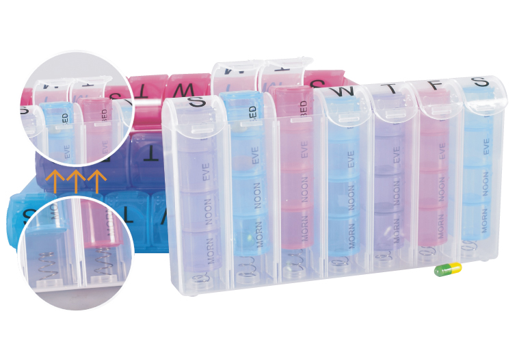 • The semitransparent pill reminder allows you to see what is inside the pill reminder and instantly know if you have taken your pills or not.
