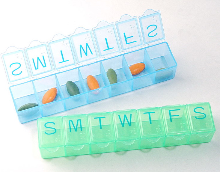 7-Day Vitamin/Medicine Box is designed with easy open lids and locking structure that prevents pills from spilling.